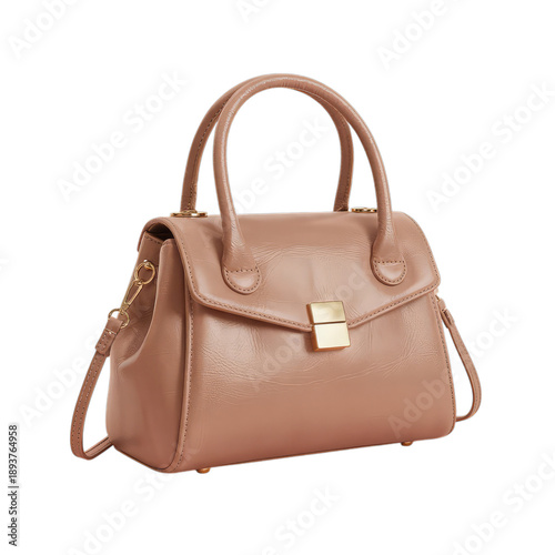 Taupe leather handbag gold clasp accessory