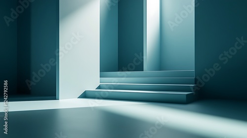 stair, teal, room, light, empty, product, display, background, architecture, interior, modern, design, abstract, minimalist, space, shadow, step, platform, showcase, presentation, scene, studio, clean, simple, elegant, geometric, texture, wall, floor, blank, concept, style, calm