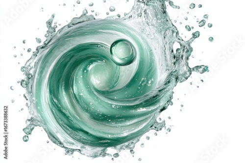 swirl, teal, water, splash, liquid, spiral, abstract, round, sphere, dynamic, vibrant, colours, mint, green, texture, bubble, whirlpool, motion, burst, explosion, design, art, creative, smooth, glasses, semitransparent, center, isolated, white, background, clean, fresh, water, iridescent, shiny, elegant, modern, beauty, cosmetic, product, pattern