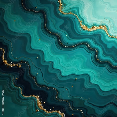 Teal turquoise marble, navy waves, gold accents Elegant alcohol ink background , stationery, brush