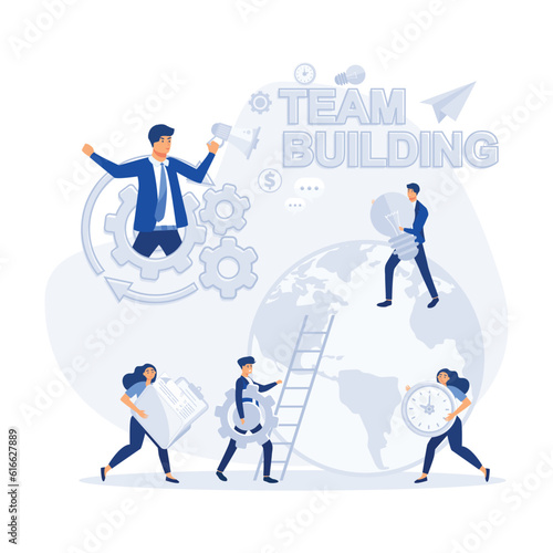 Team building concept. Group of people gather and work together to get good business results, flat vector modern illustration