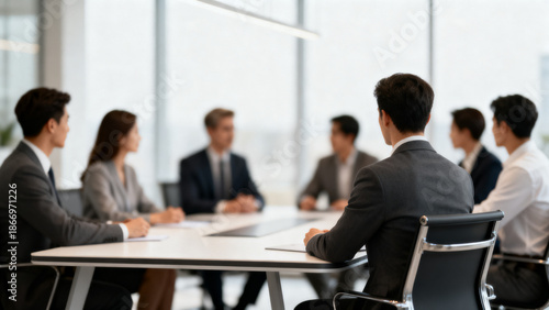 Team Meeting in Modern Office with Blurred Colleagues, Corporate Atmosphere