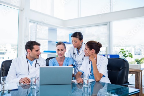 Team of doctors looking at laptop