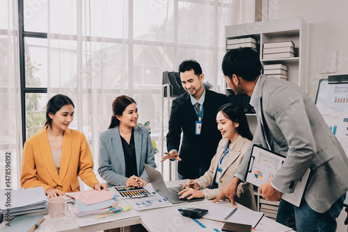 Team of financial advisory services. Asian advisor showing plan of investment to clients in the consultancy office..
