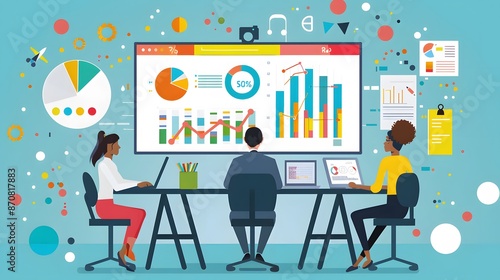 Team of marketers analyzing customer demographics., clean background, Photo stock style, clean background, no copyrighted logo, no letters