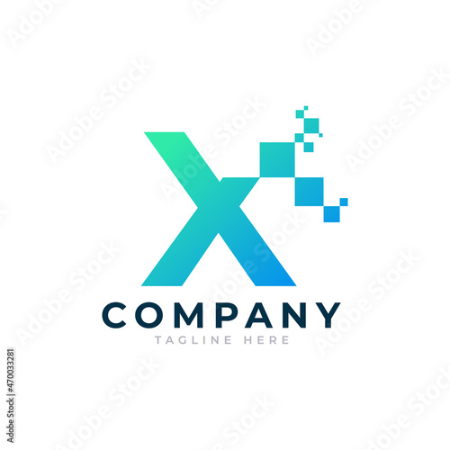 Tech Letter X Logo. Blue and Green Geometric Shape with Square Pixel Dots. Usable for Business and Technology Logos. Design Ideas Template Element.