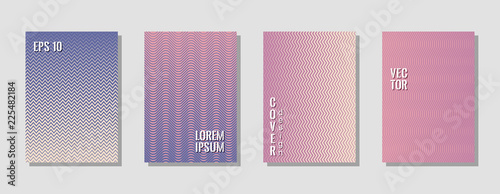 Tech pink blue zig zag banner templates, wavy lines gradient stripes backgrounds for business cover. Curve shapes stripes, zig zag edge lines halftone texture gradient banner backgrounds collection.