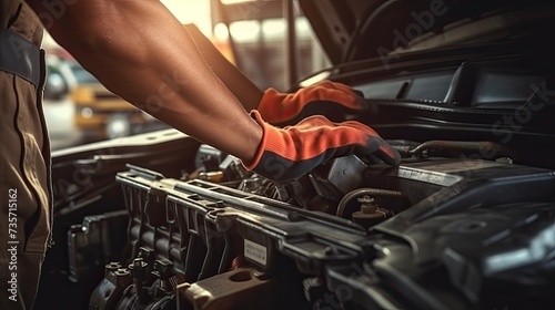 Technician Hands of car mechanic working repair in auto repair Service and Maintenance.