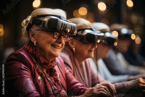 Tech-Savvy Seniors. Seniors participating in virtual social gatherings or online forums, showcasing their digital connectivity. Generative AI.