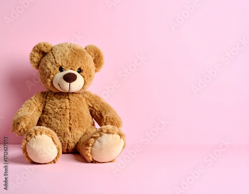 teddy bear, toy, bear, plush, animal, cute, pink, background, soft, fluffy, childhood, love, gift, present, adorable, brown, stuffed, studio, nobody, design, copy space, isolated, still life, teddy, soft toy, stuffed animal, february 14, valentine, children, baby, children, hug, comfort, cuddly, gentle, sweet, innocence, modern