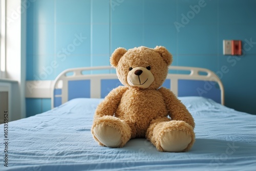 bear, plush, toy, bedchamber, blue, bedcover, soft, lighting, sheer, curtain, comfort, cosy, childhood, stuffed, animal, interior, home, decor, relaxation, innocence, warmth, cuddle, toy, sleeping, peaceful, calmness, memory, playful, adorable, joy, light, textile