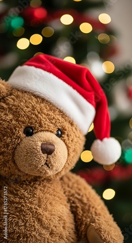 Teddy bear wearing Santa hat Christmas festive