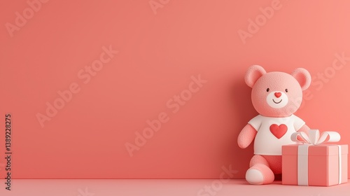 teddy bear, sitting, gift box, nubes, ribbon, present, giving, pink, white, celebration, festive, holiday, february 14, romantic, love, sweet, children, toy, plush, cute, cheerful, cartoon, greeting, design, background, copy space, illustration, rendering, studio shot, still life, soft, sweetness, gentle, happy, comfort, decoration, decorative, anniversary, symbol