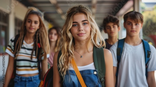 Teen fashion, eco-conscious young group, school campus, casual and trendy