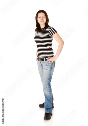 isolated, girl, smiling, portrait, young, cheerful, full, teenage, teenage, teenage, 1, caucasian, beautiful, expressing, positivity, confidence, studio, student, jean, happiness, cute, vitality, fine, woman, carefree, 20s, femininity, individuality, brunet, communication, casual attire, smile, healthy, freshness, joy, wondering, curious, shy, staring, posing