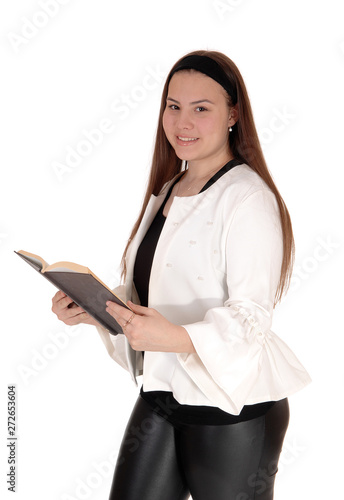 teenage, girl, student, 14, holding, book, schoolgirl, homework, studio, isolated, white, jacket, female, standing, young, education, background, school, caucasian, smile, attractive, beautiful, teenage, person, studying, college, portrait, happy, casual attire, cute, pretty, natural, fashion, study, 1, read, learning, lifestyle, body, length, vertical, friendly, wearing