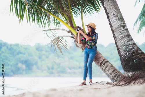 analog, asian, beach, beautiful woman, casual clothes, coastline, coconut palm, enjoyment, filming, fun, happiness, hobby, jean, journey, avocation, lifestyle, movie camera, old-fashioned, one person, outdoors, palm tree, people, photo, sand, sea, short, summer, sunlight, sunny, teenage, thai, siam, tour tourism, holiday maker, travel, vacation, woman, young adult, missy, joy, smile, teenage girl