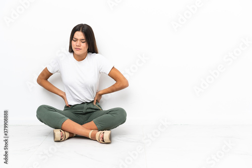 Teenager girl sitting on the floor suffering from backache for having made an effort