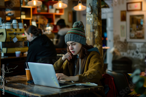 laptop, teenage, young, cafes, typing, connection, online, surfing, study, casual attire, work, cyberspace, table, technology, lifestyle, browsing, generative, ai, chatting, focused, indoor, serious, student, hot drink, relax, window, cup, drink, beautiful, scrolling, concentration, communication, learning, urban, keyboard, teenage, business, date, chair, leisure, modern, multitask