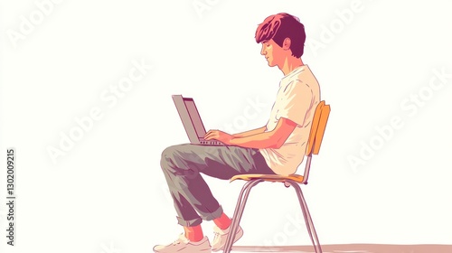 teenage, student, laptop, study, school, education, learning, online, cyberspace, homework, digital, technology, computer, chair, seated, work, sharpened, concentration, young, person, sitting, classroom, schoolhouse, modern, illustration, graphic, drawing, vignetting, art, design, colours, image, lifestyle, cognition, future, virtual, youth, teenage, generation