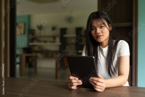 woman, student, library, sitting, asian, thai, indoor, teenage, teenage, computer, tablet, technology, studying, online, portrait, using, smile, person, notebook, lifestyle, beauty, work, reading, looking, cyberspace, business, smiling, home, businesswoman, people, office