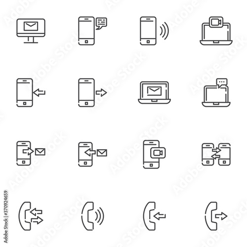 Telecommunication line icons set, communication outline vector symbol collection, linear style pictogram pack. Signs, logo illustration. Set includes icons as computer display message, chat comment