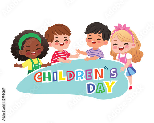 Template design with happy international children. Happy Children day. Cartoon characters in flat style, Vector illustration
