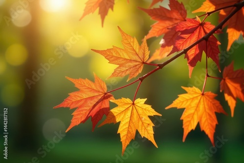 Tender maple branch with emerging leaves, sunlight dappled , plant, texture, foliage