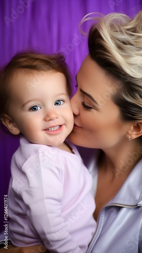 mother, baby, girl, kiss, closeup, portrait, purple, background, love, family, affection, tenderness, children, infant, toddler, woman, eltern, care, happiness, sweet, cute, adorable, bonding, innocence, gentle, warm, emotion, feeling, human relationships, maternal