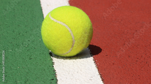 Tennis ball on blue tennis court. the concept of a sporty lifestyle.