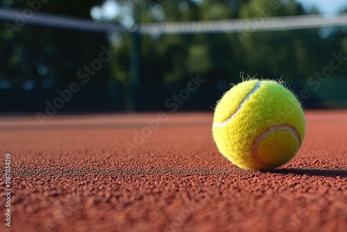 tennis, ball, court, sport, clay, sunny, community, activity, game, green, equipment, recreation, exercise, leisure, training, competition, match, day, summer, play, athletic, sharpened, detail, vibrant, lifestyle, hobby, fun, youth, energetic, movement, practice, net, challenge, skill, player, tournament, bounce, ground, surface, score, rally