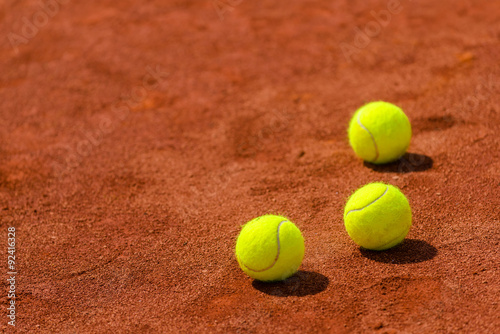 Tennis balls on clay court