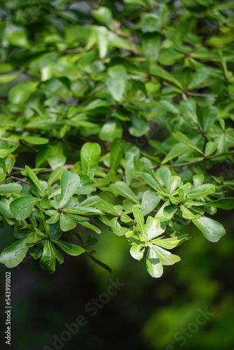 Terminalia mantaly (Also called Ketapang kencana, Madagascar Almond) tree with a natural background