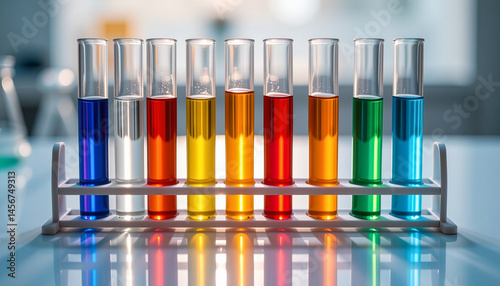 test tubes aligned in symmetry on white tabletop, conceptual clean science