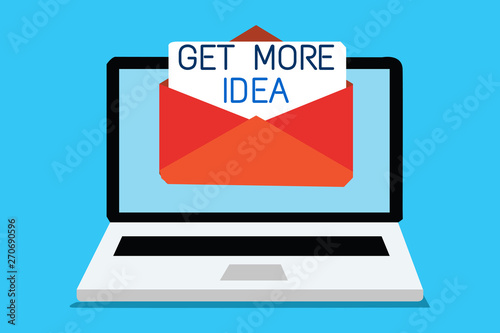 Text sign showing Get More Idea. Conceptual photo Random Input Mind Map Picture Mock up Surveys Visualization Computer receiving email important message envelope with paper virtual