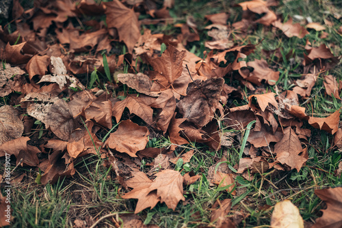 texture and background for autumn. autumn brown leaves that fell from the trees. blanket of autumn covering the ground