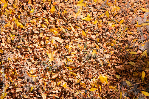 Texture of a ground covered by autumn leaves.