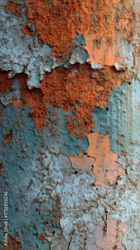 Texture of Aged Wall: Capturing the passage of time through weathered paint on a textured surface, where rust and faded hues tell a story of endurance and aesthetic charm.