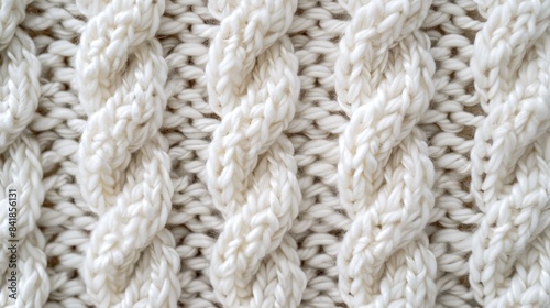 Texture of knitting in white wool with detailed rows weaving horizontally Sweater background in textile with close up macro shot
