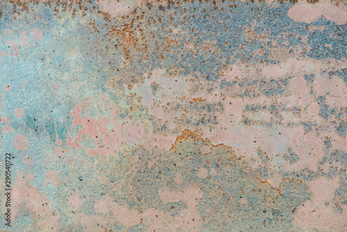 texture of rusty painted metal. several layers of paint. corrosion of metal