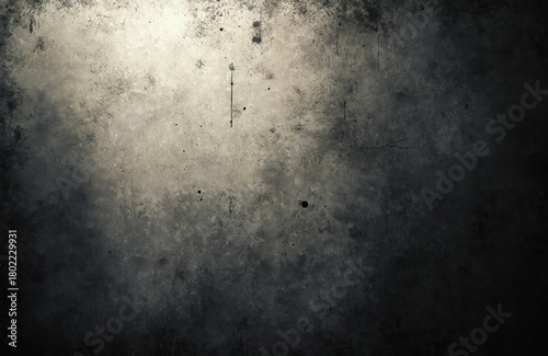 Textured background with grunge elements, scratches and spots in shades of grey and black. Light source illuminates left side creating dark moody atmosphere. Useful for horror themes.