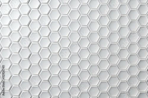 Textured white hexagonal pattern background in a seamless design, suitable for various applications in graphic design and interior decor.
