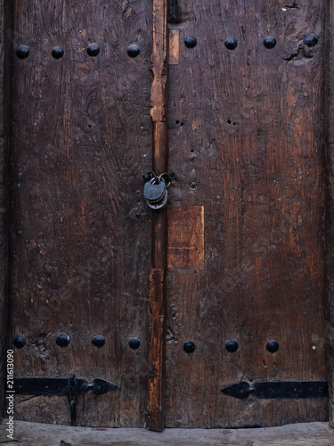 Textured wooden door with metal rivets