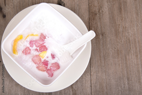 Thai dessert. Water Chestnuts in Coconut Milk. Tub Tim Krob...