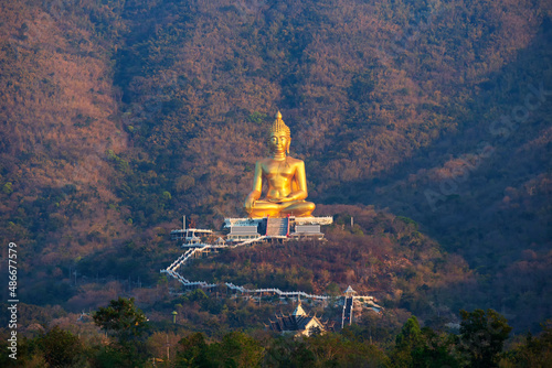 Thai people and travelers travel visit come to worship with Big Buddha Statue in Wat Khao Wongphrachan will have an annual Buddha Festival during February at Lopburi province, Thailand