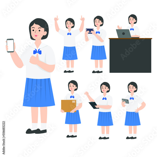 Thai student uniform cartoon presenting concept