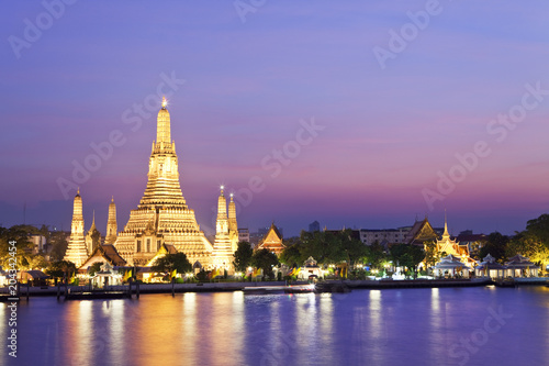 architecture, temple, building, tower, tranquility, buddhist, asia, horizontal, artificial light, illuminated, lighting, dusk, city, nobody, city landscape, river bank, river, reflect, cloud, sky, light, color image, southeast asia, serenity, waterfront, shore, building exterior, illumination, twilight, gloaming, evening, serene, peace, peaceful, peacefulness, asian