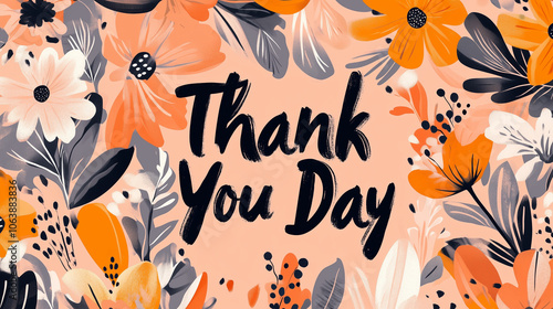 thank, you, day, floral, illustration, flower, orange, grey, leaf, text, gratitude, appreciation, celebration, design, decorative, holiday, art, background, typography, cheerful, positive, festive, greeting, card, warm, pattern, creative, bold, colourful, artistic, nature, seasonal, modern, floral pattern, abstract, banner, poster, inspirational, message, thank, recognition, orange flower, foliage, no people, stylish, wallpaper, decoration