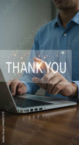 thank, you, laptop, man, gratitude, digital, typing, online, business, hand, person, technology, work, computer, keyboard, communication, cyberspace, desk, office, shirt, table, formal, message, touch, connection, modern, screen, workspace, network, human, professional, device, male, gesture, social, media, buttons, style, closeup, finger