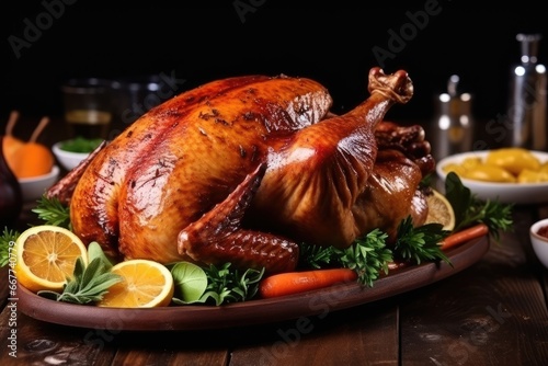 meal, thanksgiving, turkey, meat, plate, tradition, grilled, horizontal, no people, photo, lunch, poultry, rustic, color image, homemade, chicken, christmas, dish, whole, ai, candle, pumpkin, roast, salad, crockery, decoration, food and drink, rural scene, sauce, stuffed, appreciation, background, dining room, falling, feast, festivity, friends, gathering, giving, harvest, indoor, laughter, memory, nostalgia, skin, togetherness, warmth, window, abundance